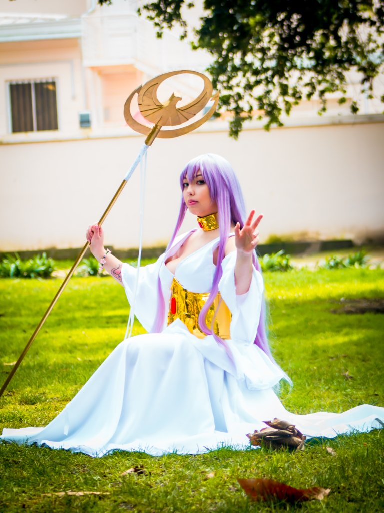 Diosa Athena de la anterior Guerra Santa. Lleva una cadena de flores, signo de su vinculo con su hermano Alone y Tenma, caballero de Pegaso.